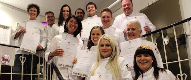 Die ersten Schokoladen-Sommeliers halten ihre Auszeichnungen in den Händen – Akademie Deutsches Bäckerhandwerk Weinheim und Chocolate Academy Center Köln gratulieren.